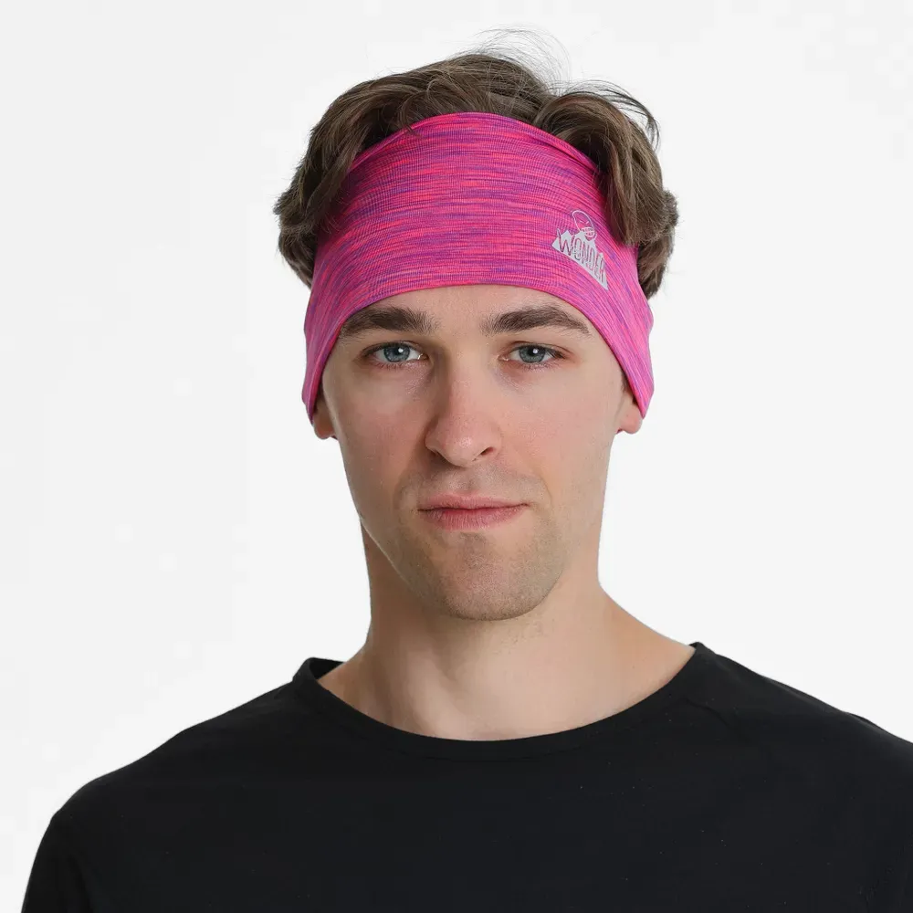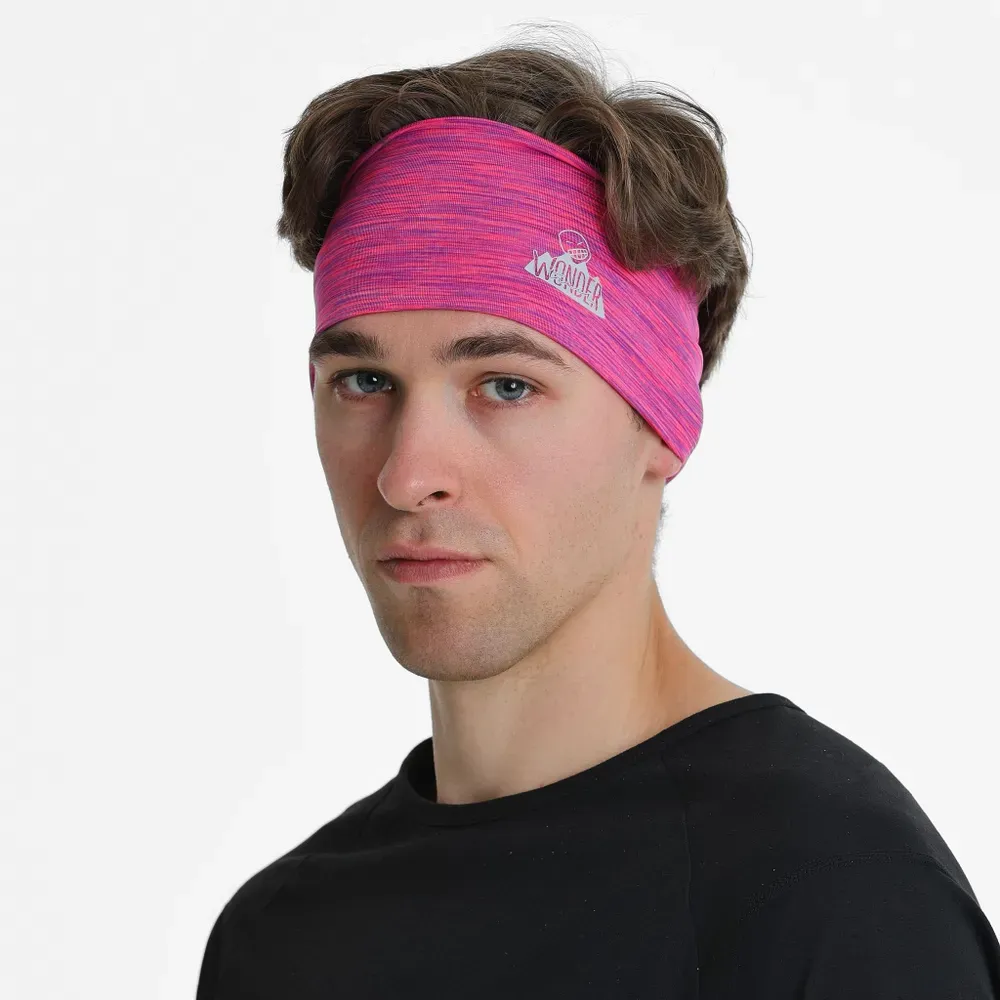 Широкая, двойная повязка из технологичного полиэстера с добавлением спандекса для бега и других видов спорта или активного отдыха. Повязка хорошо тянется, обладает высокой прочностью, хорошо впитывает влагу и быстро сохнет.