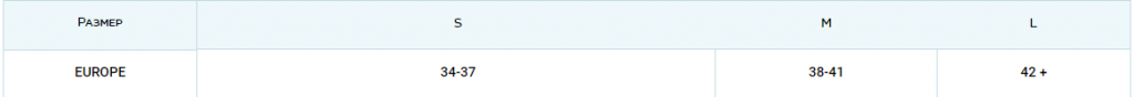 Таблица размеров: