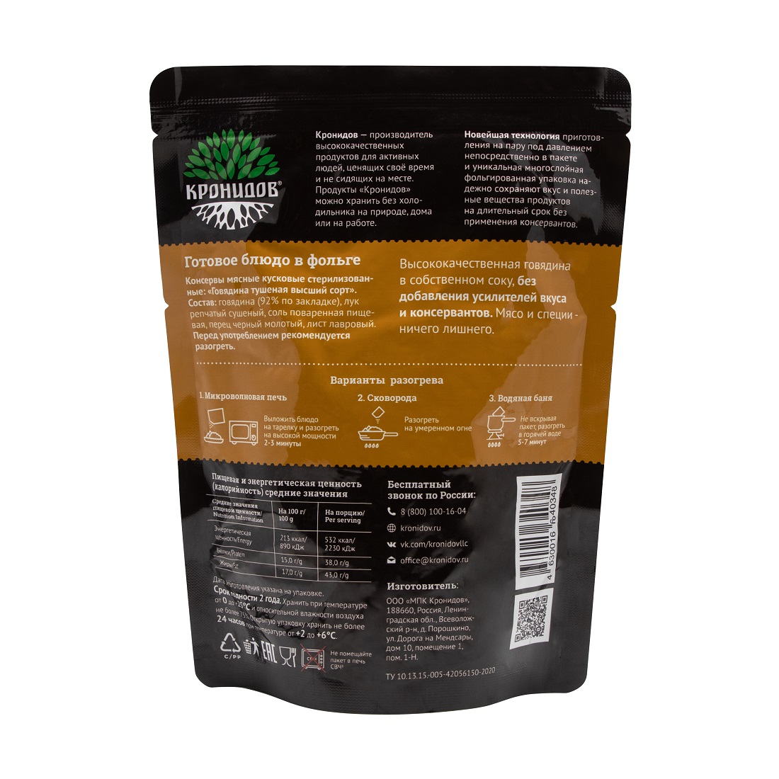 Состав: говядина (92% по закладке) , лук репчатый сушеный, соль поваренная пищевая, перец черный молотый, лист лавровый.