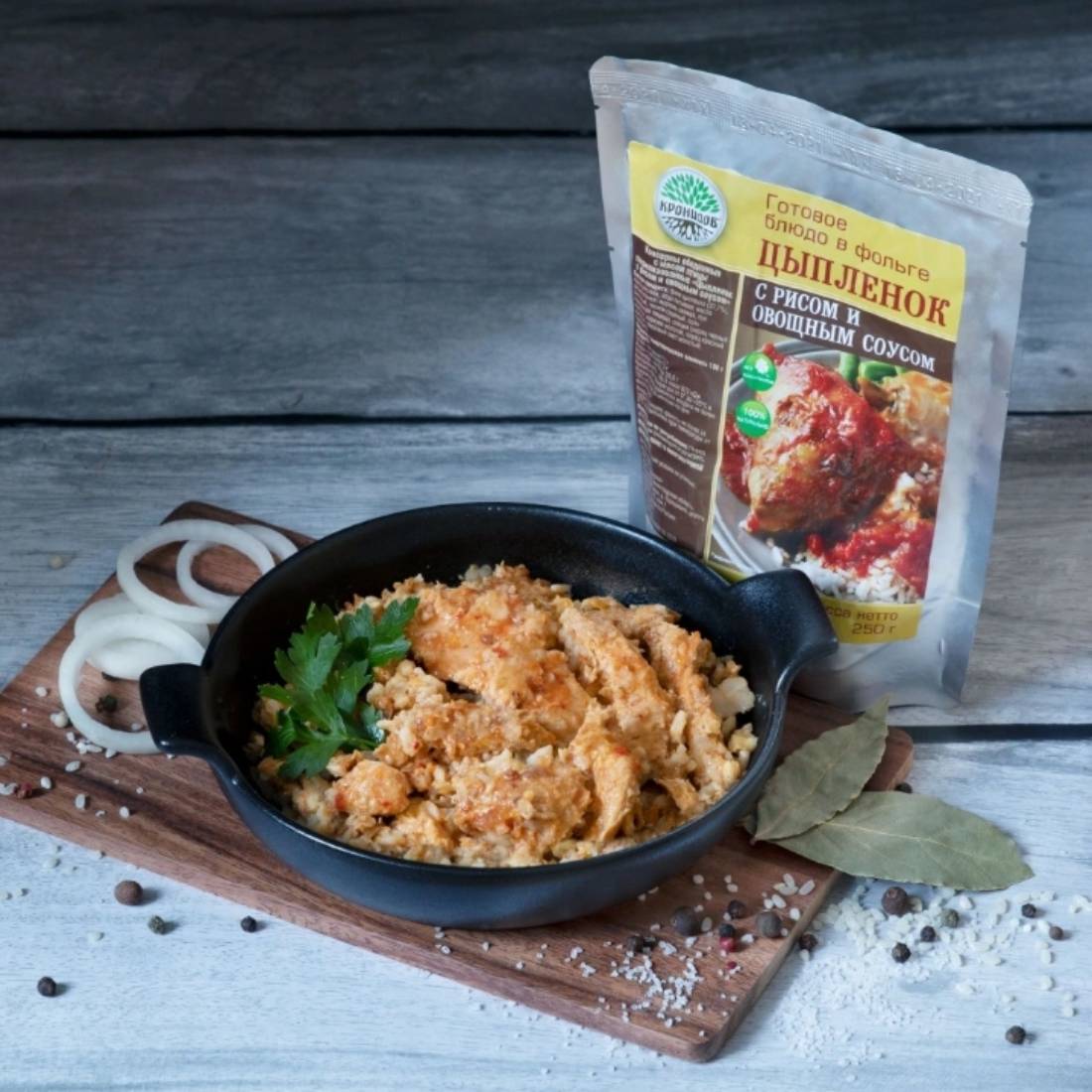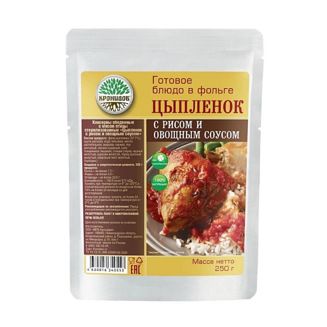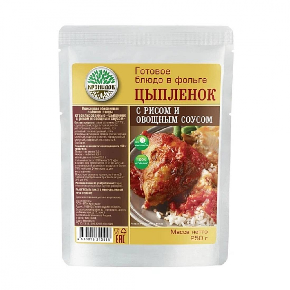 Цыплёнка с рисом и овощным соусом можно есть прямо из пакета, что экономит место в вашем рюкзаке – из посуды вам понадобится только ложка!