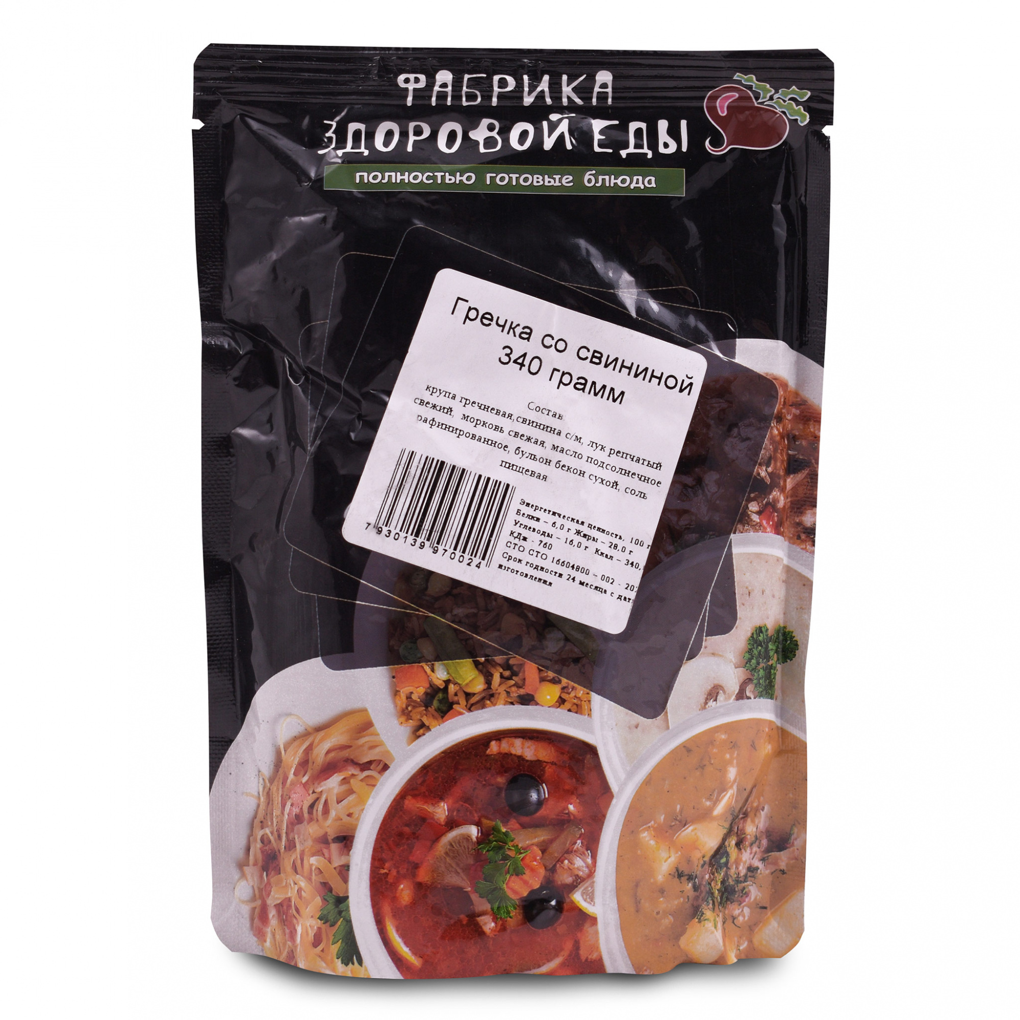 Готовое блюдо Гречка со свининой - вкусное ароматное, а главное питательное второе блюдо, легкое в приготовлении и удобное в транспортировке, может стать отличным дополнением к вашему рациону в походе или путешествии. Обработано высокой температурой, более 120°C, для сохранения витаминов и пищевой ценности.