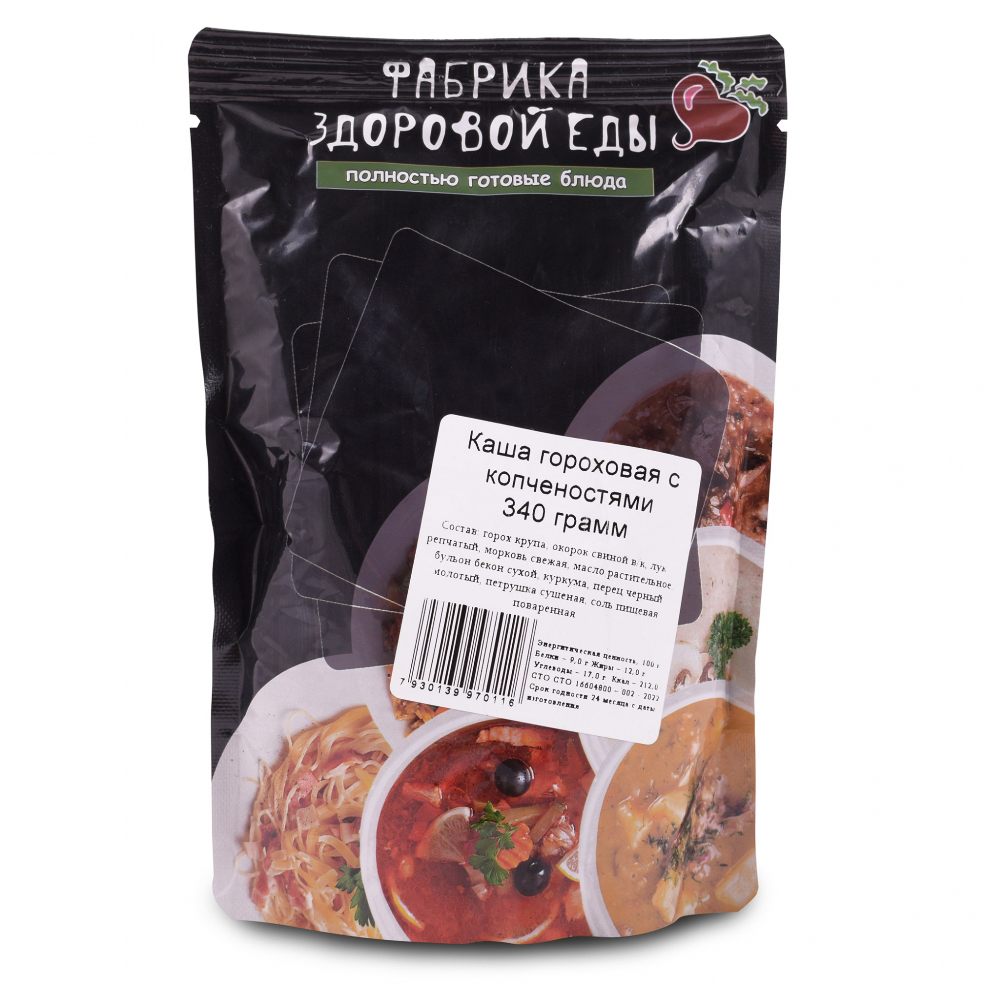 Готовое блюдо Каша гороховая с копченостями - вкусное ароматное, а главное питательное второе блюдо, легкое в приготовлении и удобное в транспортировке, может стать отличным дополнением к вашему рациону в походе или путешествии. Обработано высокой температурой для сохранения витаминов и пищевой ценности.
