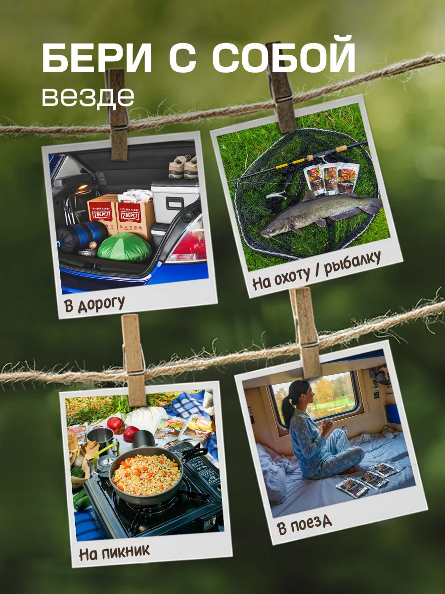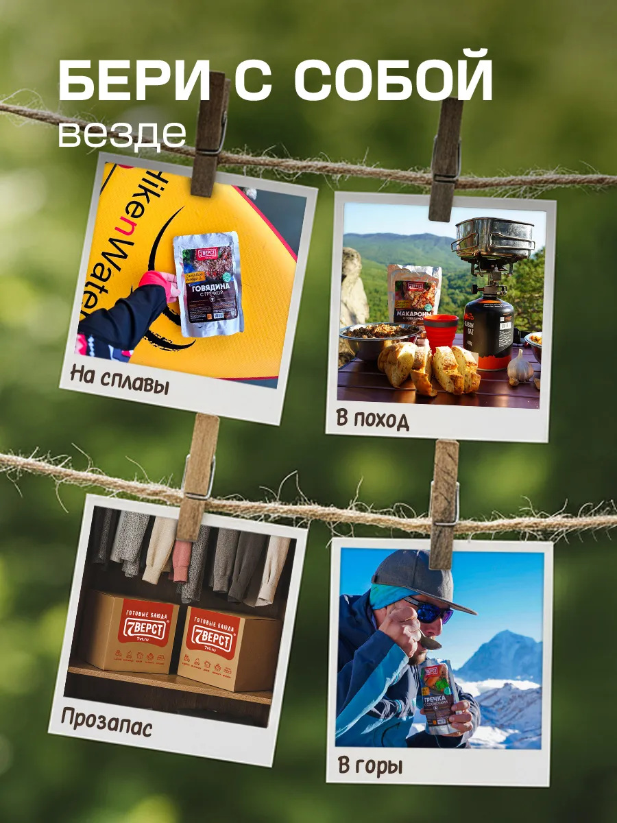 В состав входят натуральные ингредиенты без лишних вредных добавок. Это позволяет продлить срок хранения готовой еды в упаковке до двух лет.