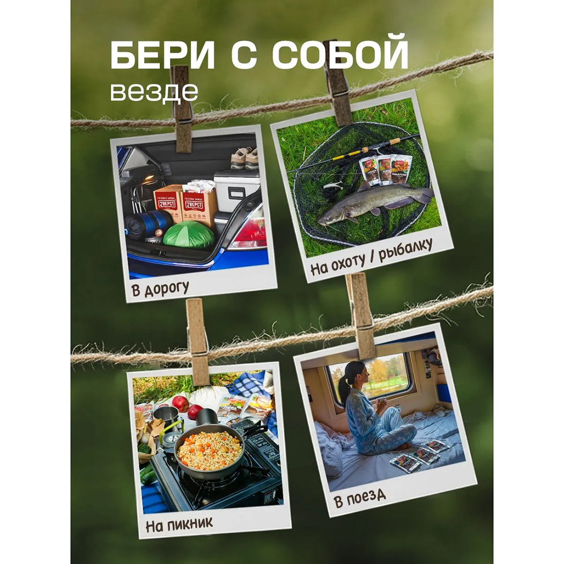 Способ приготовления: перелейте борщ в тарелку и доведите его до готовности в микроволновой печи. В походе вы можете разогреть реторт-пакет в котелке на водяной бане. Через 10-15 минут горячий сытный обед согреет вас.