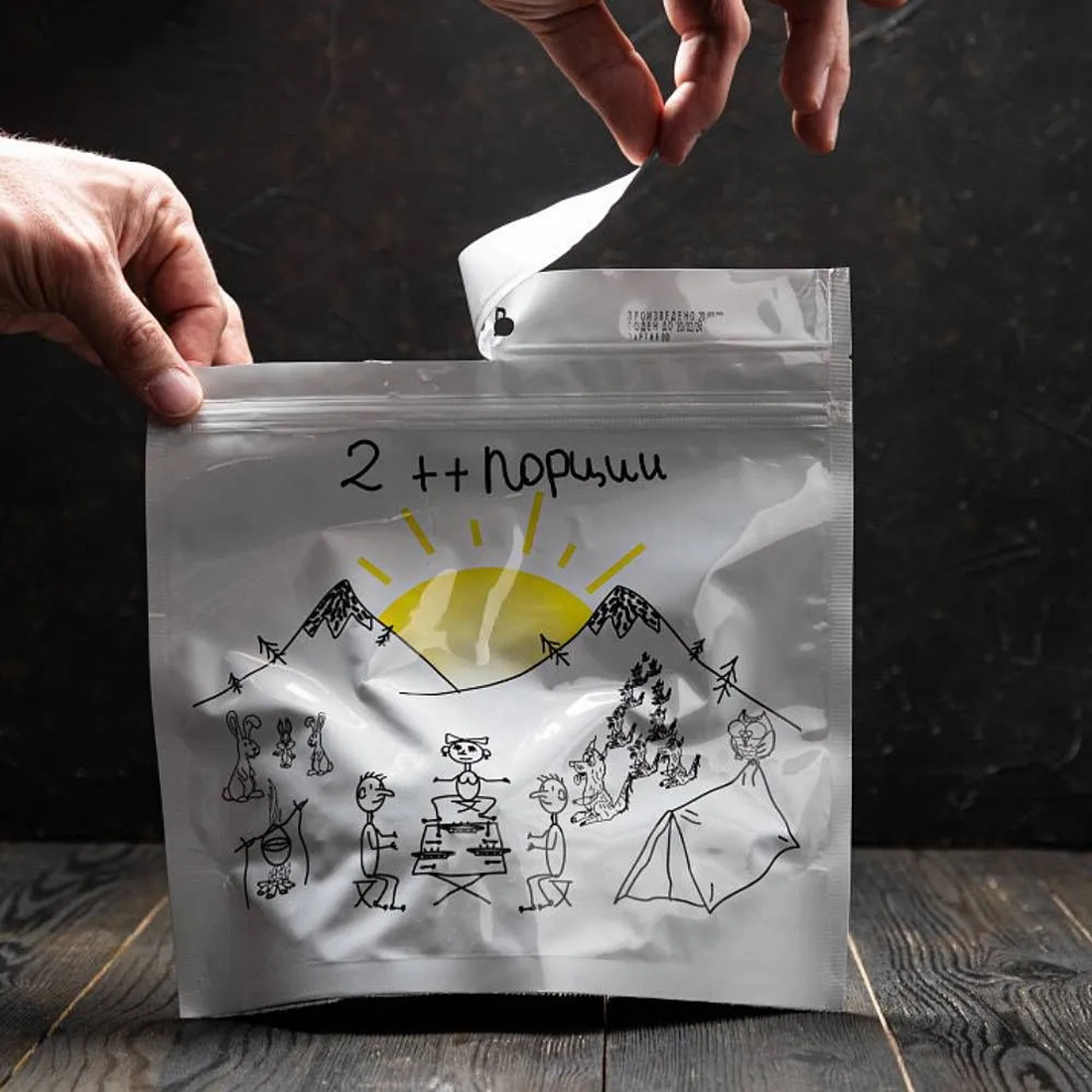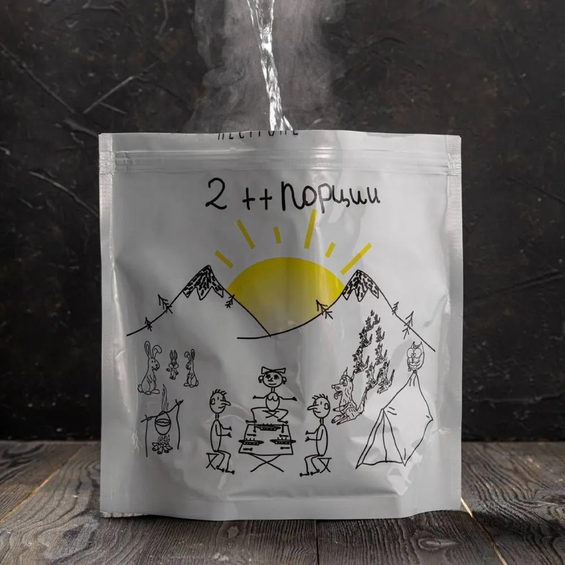 Способ приготовления: убрать пакетик с поглотителем, в пакет с содержимым залить не менее 1000 мл кипятка, закрыть пакет на зиппер. Через 5 минут перемешать содержимое пакета и опять закрыть. Ещё через 5 минут еда готова к употреблению.