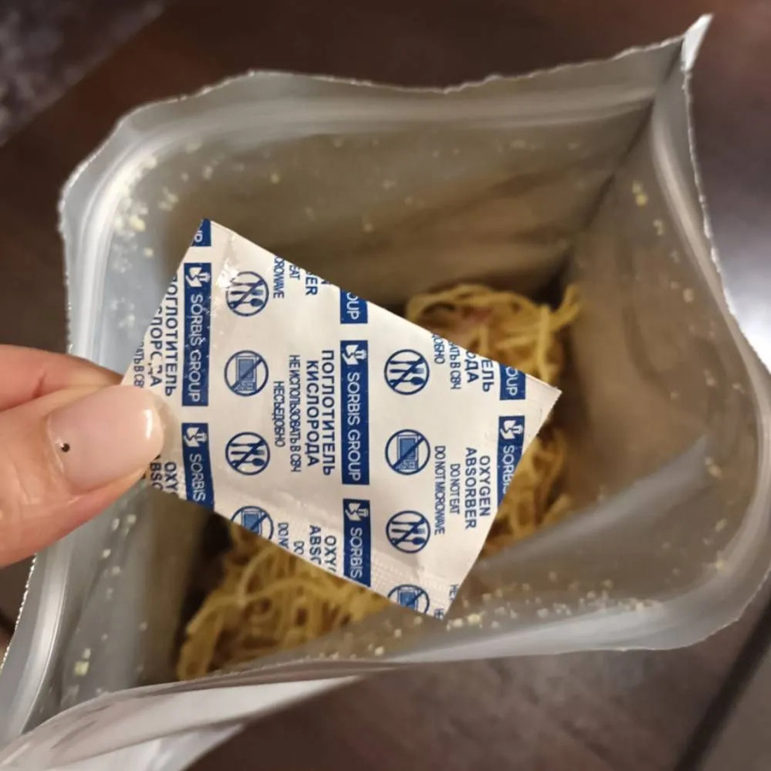 ВАЖНО! Если вы забыли вынуть пакет с кислородным поглотителем, до того как, залили воду, не волнуйтесь, ваша еда пригодна для употребления, просто достаньте пакет и наслаждайтесь едой!