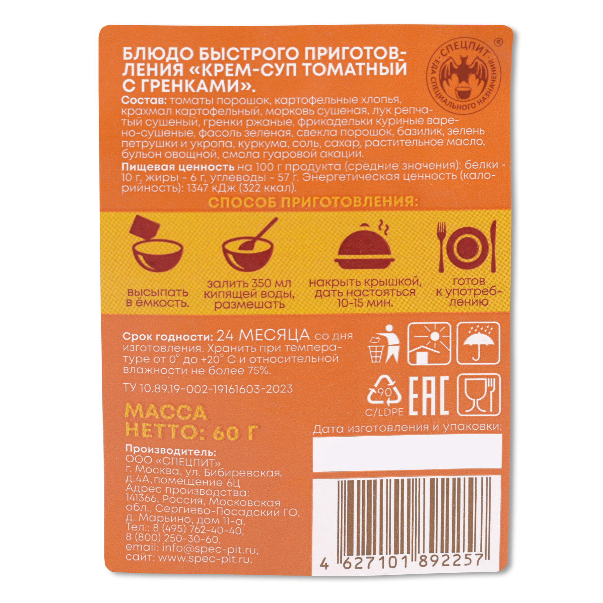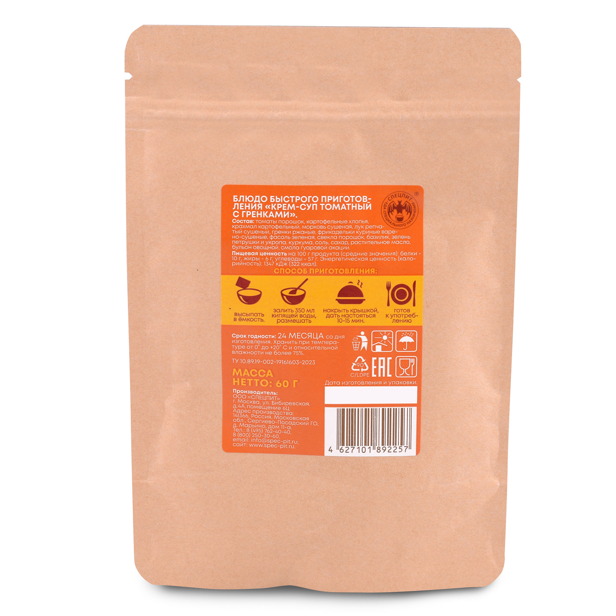 Вес сухого продукта: 60 гр.