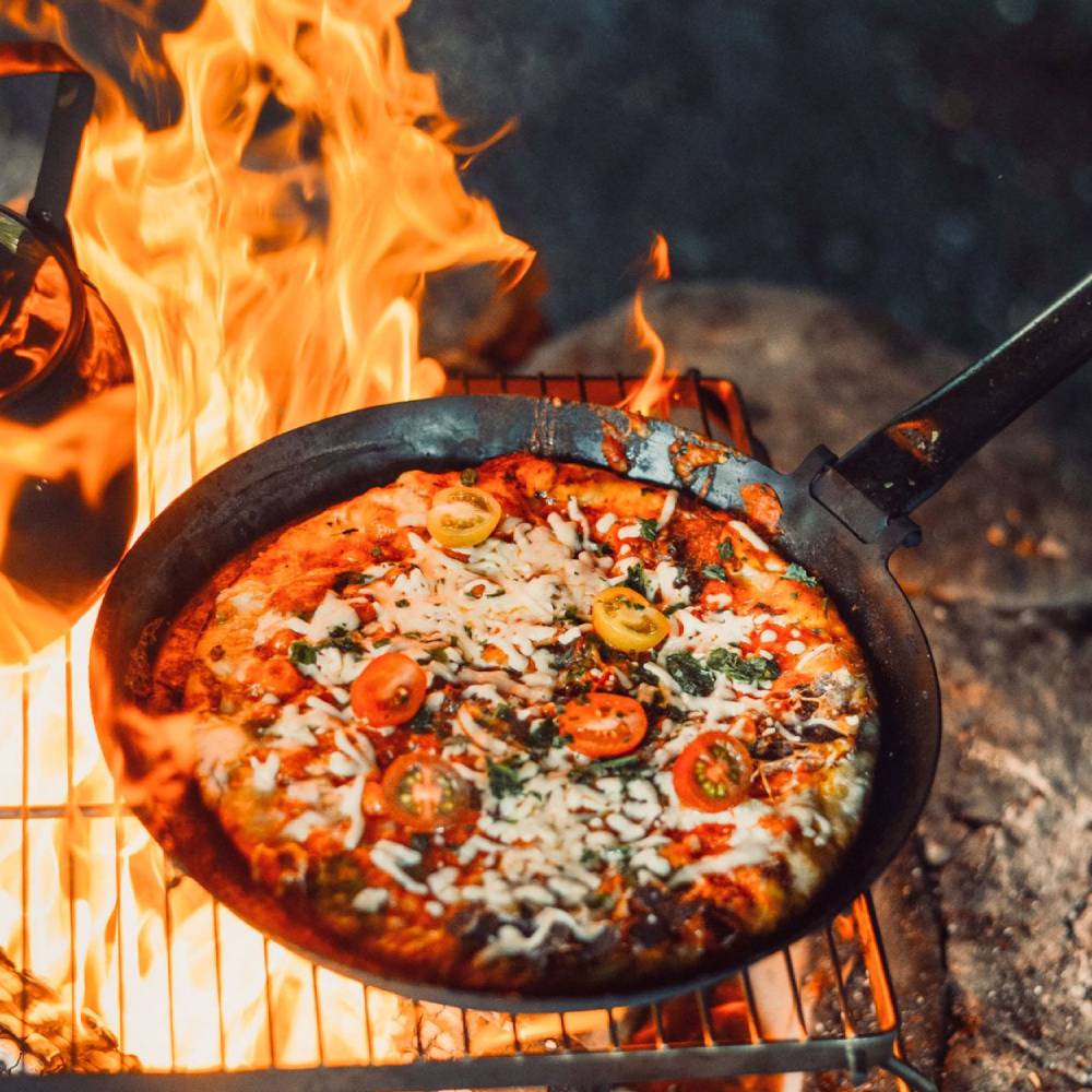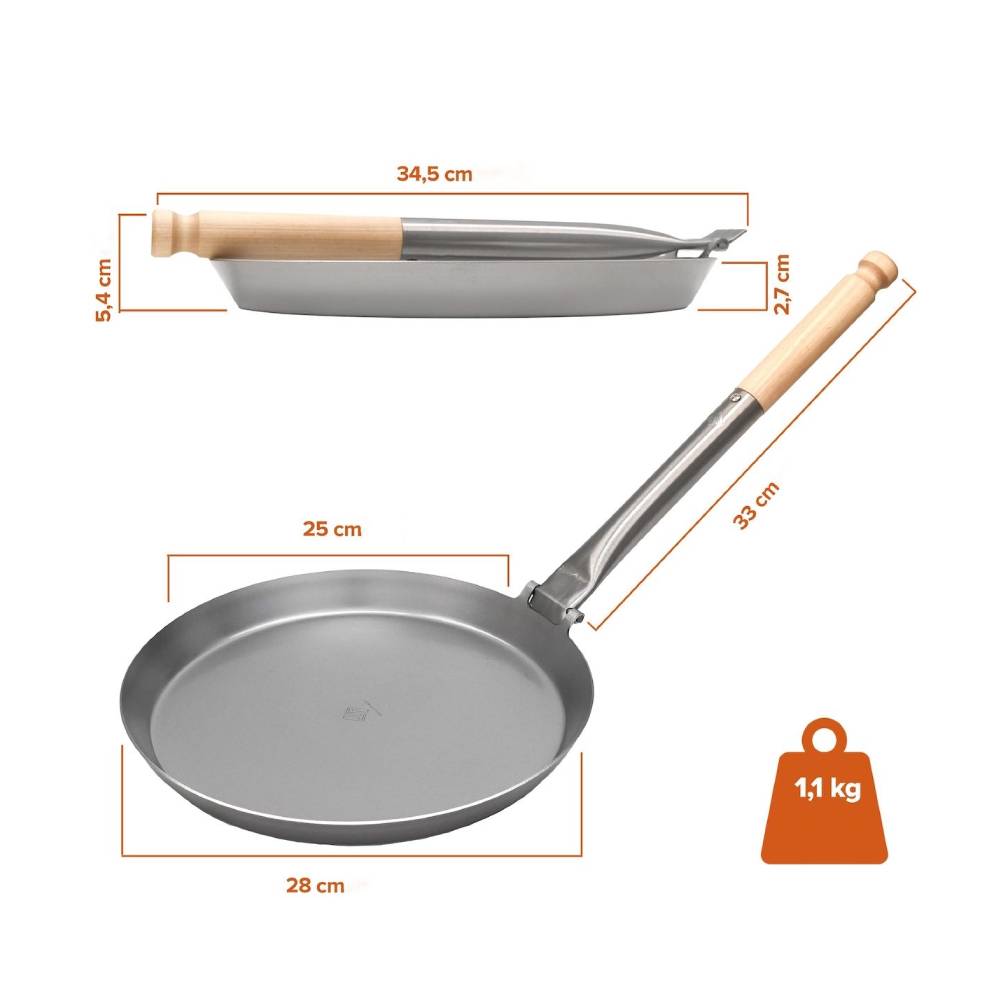 Благодаря высококачественной углеродистой стали, простой и надежной конструкции сковорода идеально подходит для жарки и приготовления пищи на открытом огне в полевых условиях.