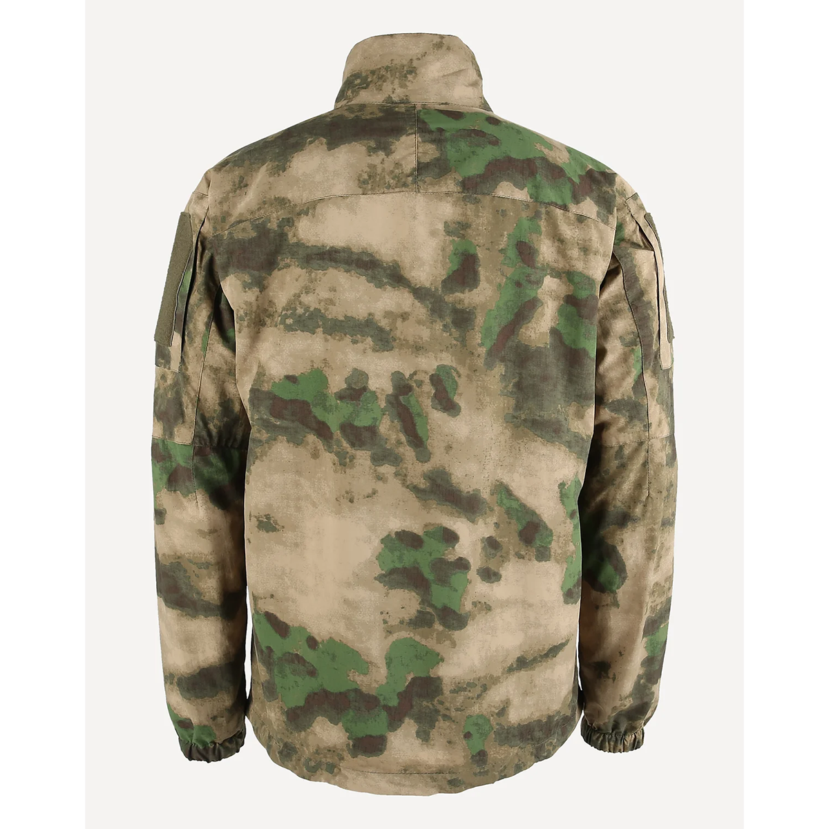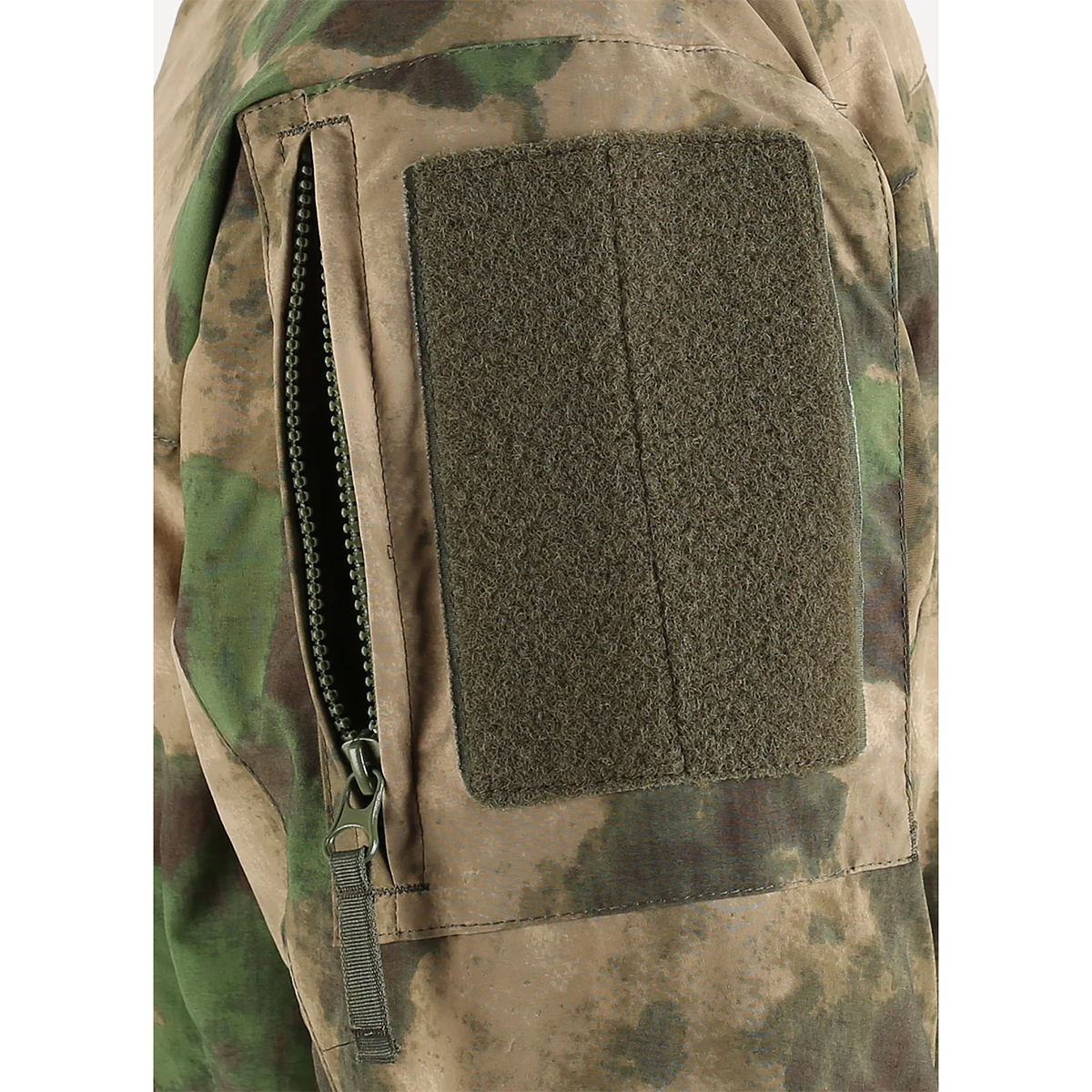 - Нарукавные карманы со входом на вертикальной молнии, снаружи молния прикрыта узкими симметричными планками. Тонкий профиль. Сзади имеется складка для объема. Липучки для крепления шевронов (10×15 см).