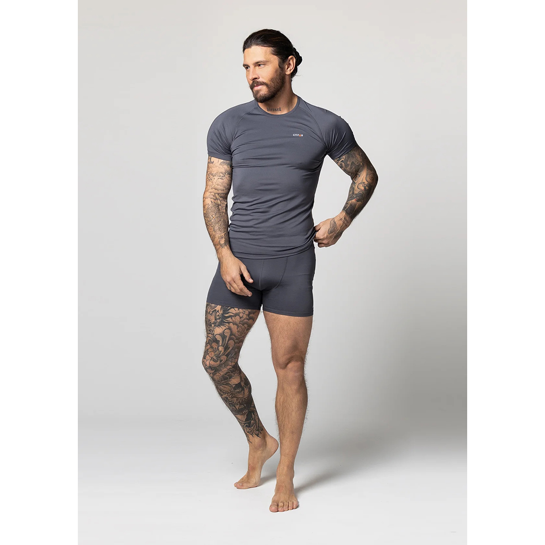- Kinetix Quick Dry Bamboo с долговременной антибактериальной обработкой на основе ионов серебра Silvadur™, 62% нейлон, 28% уголь бамбука, 10% спандекс.