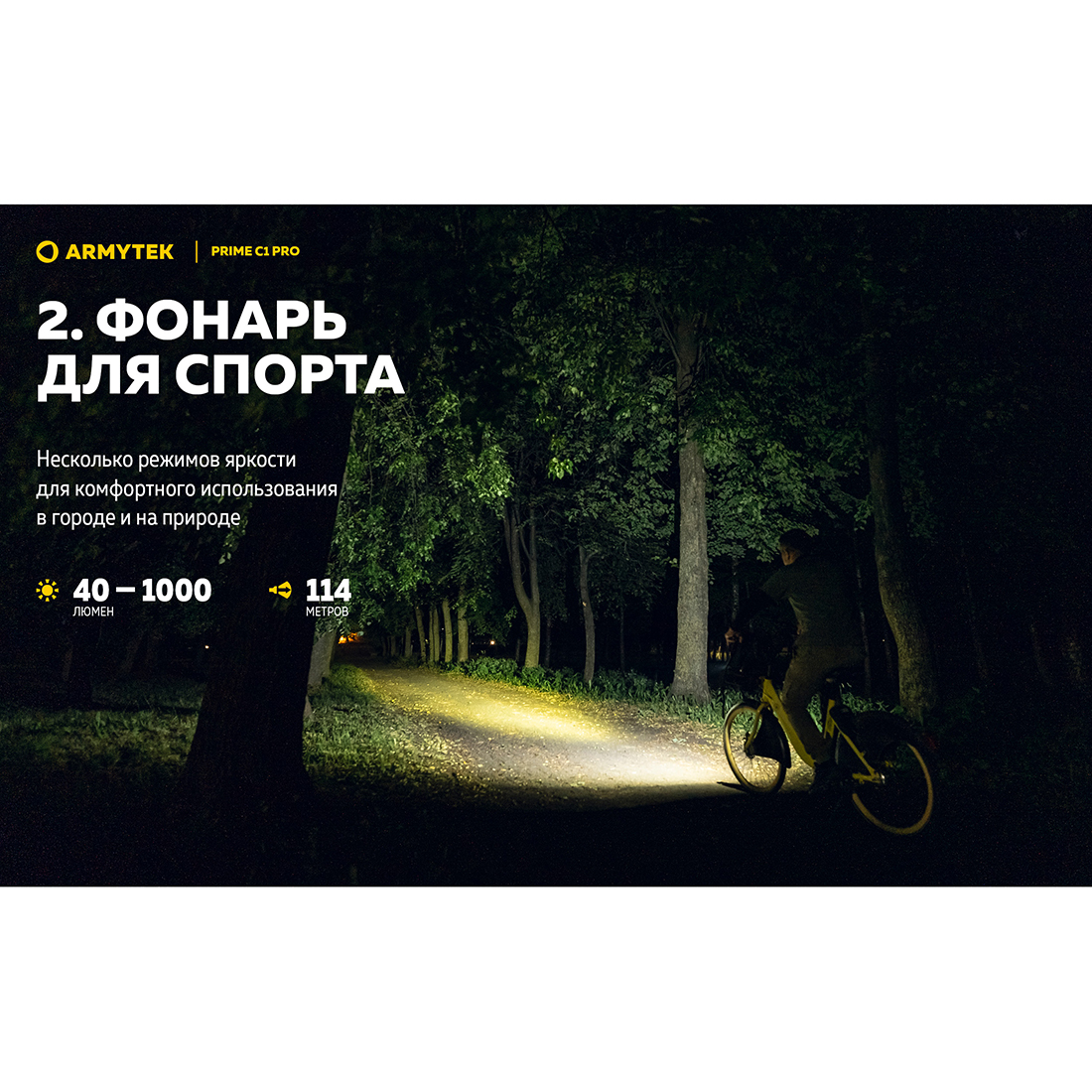 В комплект входит стальная клипса, которая надежно фиксирует фонарь на одежде, рюкзаке и даже на козырьке кепки. Подходит фонарь и для выполнения различных работ: наличие магнита в задней крышке позволяет закрепить его на металлической поверхности. Более того, Prime C1 Pro совместим с фирменным велосипедным креплением, а значит карманный фонарь способен при необходимости заменить велофару. Благодаря четкому центральному пятну широкий луч достигает расстояния в 114 метров.