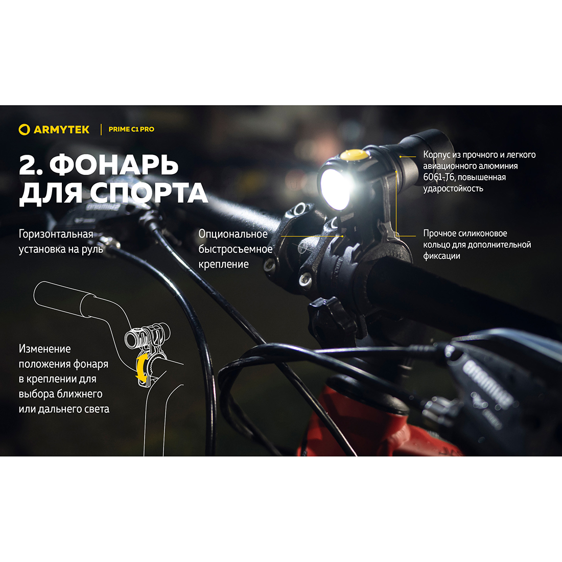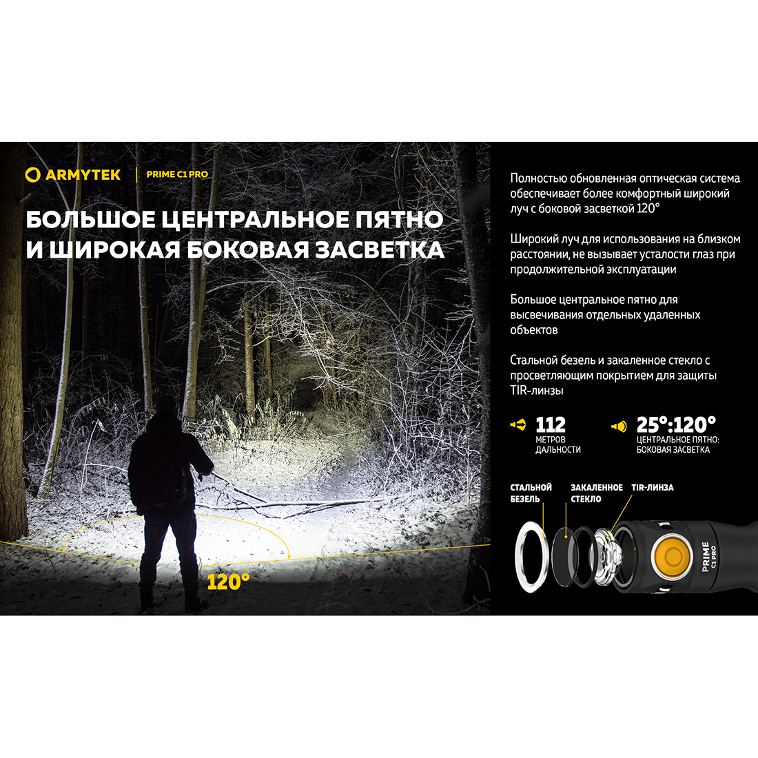 - Новая оптическая система и TIR-линза: впечатляющая дальнобойность для такой компактной головы.