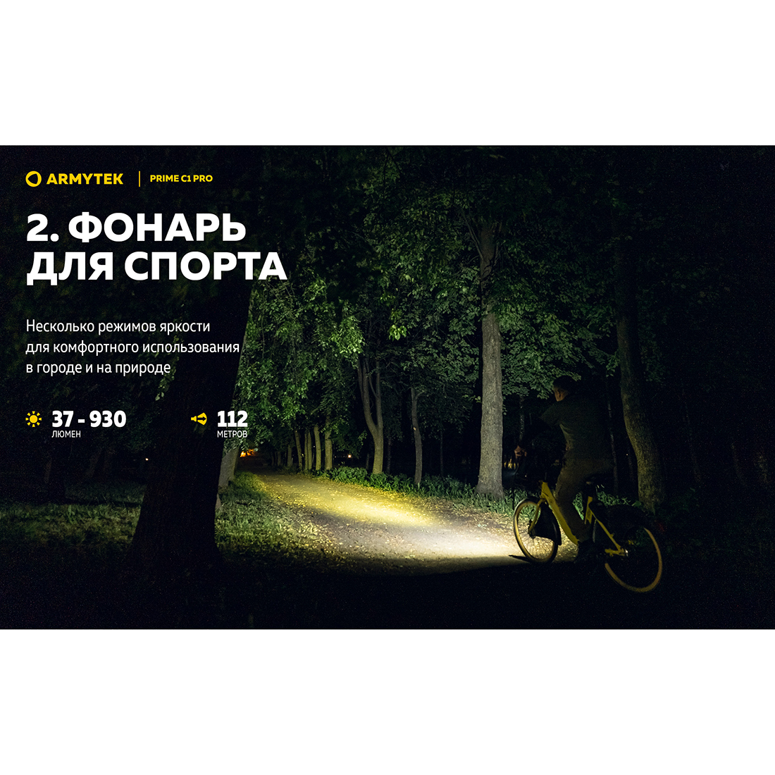 В комплект входит стальная клипса, которая надежно фиксирует фонарь на одежде, рюкзаке и даже на козырьке кепки. Подходит фонарь и для выполнения различных работ: наличие магнита в задней крышке позволяет закрепить его на металлической поверхности. Более того, Prime C1 Pro совместим с фирменным велосипедным креплением, а значит карманный фонарь способен при необходимости заменить велофару. Благодаря четкому центральному пятну широкий луч достигает расстояния в 112 метров.