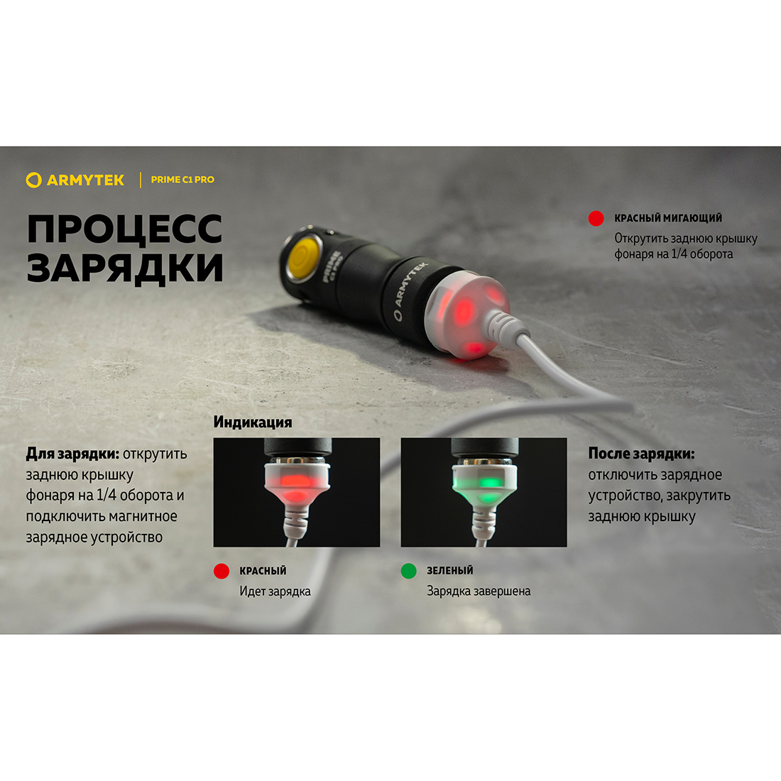 - Многоцветная индикация температуры, уровня заряда и состояния.