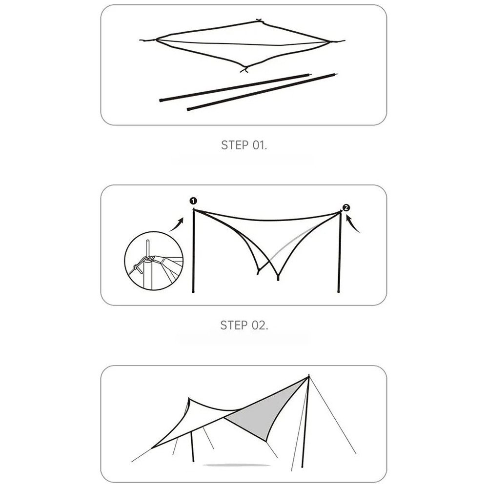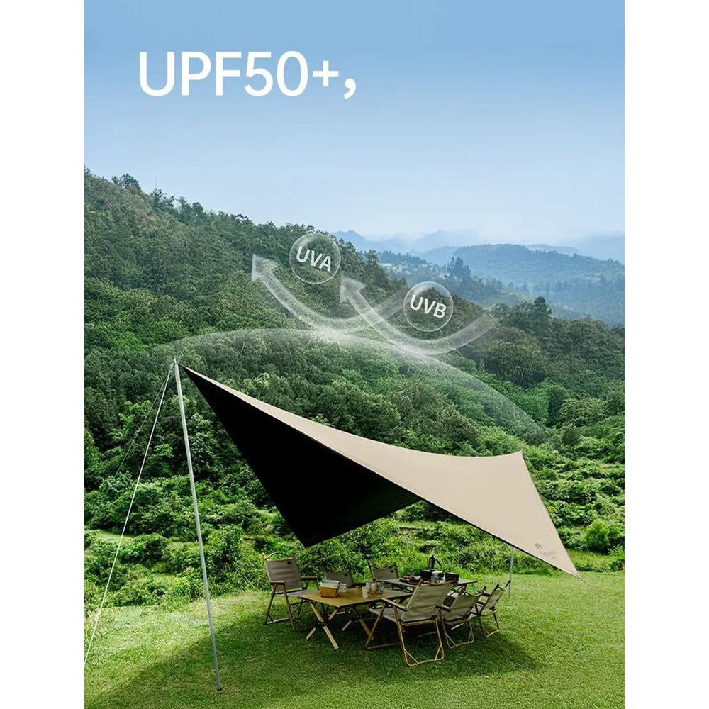 Тент Rhombic tarp CNH22ZP009 поможет создать надёжное укрытие от осадков и яркого солнца. Тент можно установить при помощи стоек, а также закрепить на деревьях, машине и т.д.