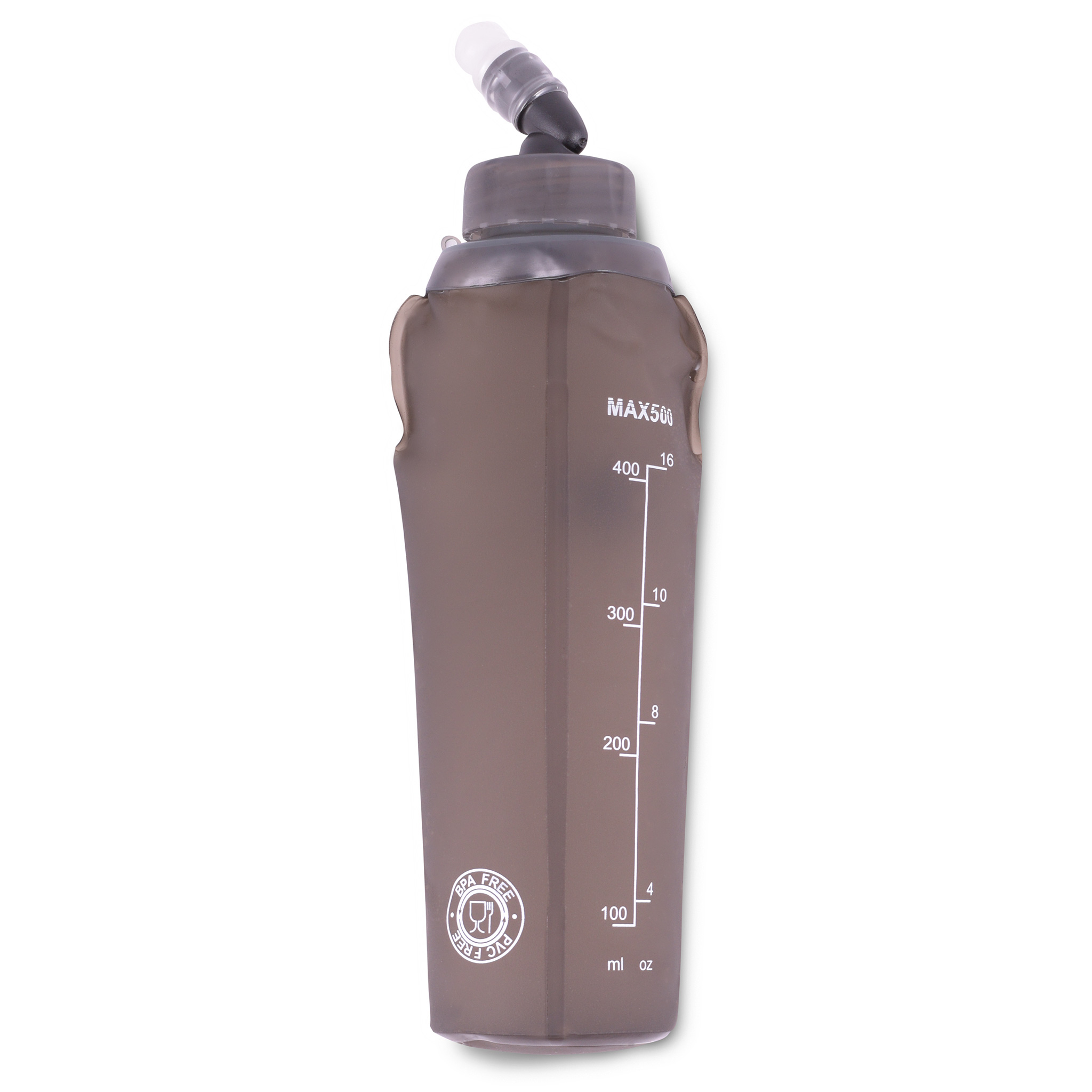 - В комплект входят две мягкие термополиуретановые фляги объемом 500 мл (каждая весом 38 г) с вращающимся на 360° диагональным клапаном для удобного питья и антифрикционным покрытием.