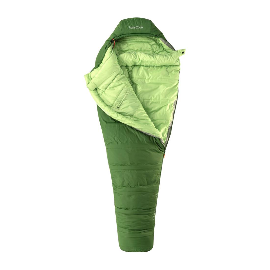 Характерная особенность спальников Kanrock — внутренний воротник с регулировкой объёма. Он добавляет комфорта и является дополнительным барьером для удержания согретого воздуха внутри. Регулировки по объему капюшона и воротника позволяют управлять микроклиматом в спальнике: расстегнуть всё в жару, либо утянуться полностью холодной ночью.