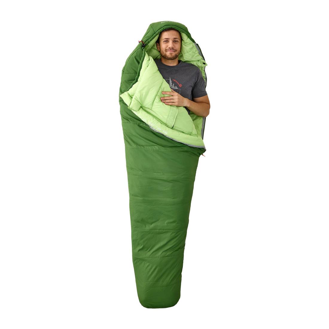 В области стоп спальный мешок имеет трехмерную форму и отделку флисом изнутри. Такая конструкция позволит вашим ногам отдыхать с максимальным комфортом после длительного пешего маршрута, располагаясь в естественном положении и в тепле.