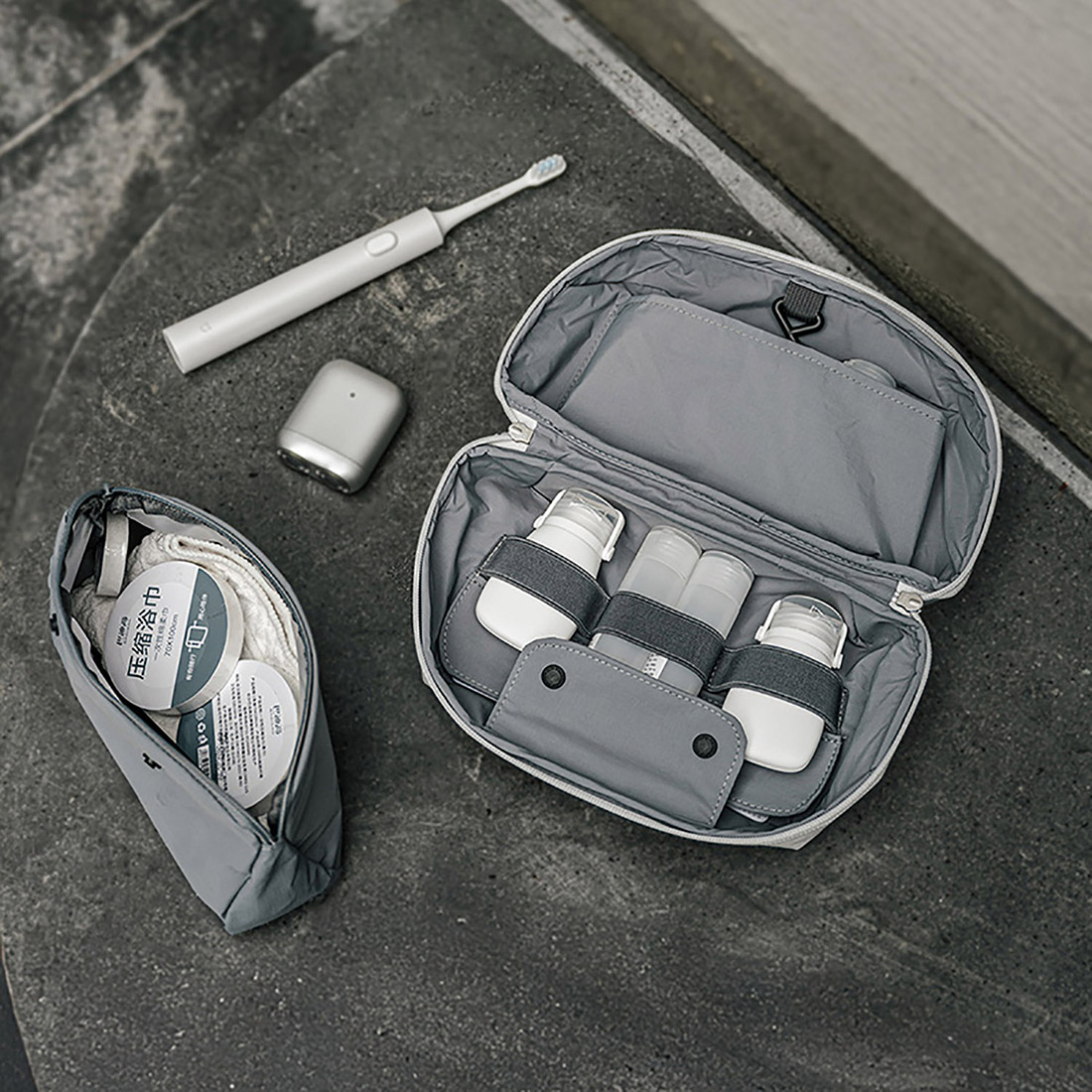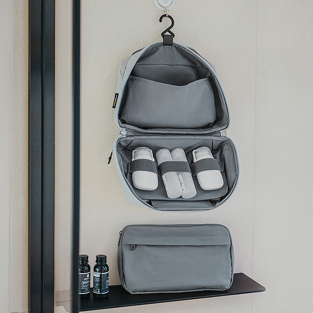 - Отделение с эластичными фиксаторами для флаконов и тюбиков.