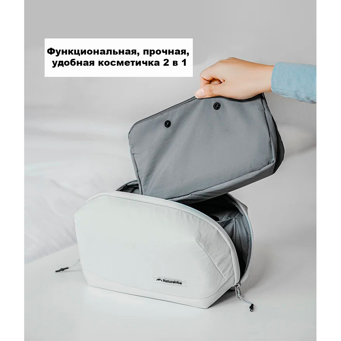 - Косметичка застегивается на молнию.