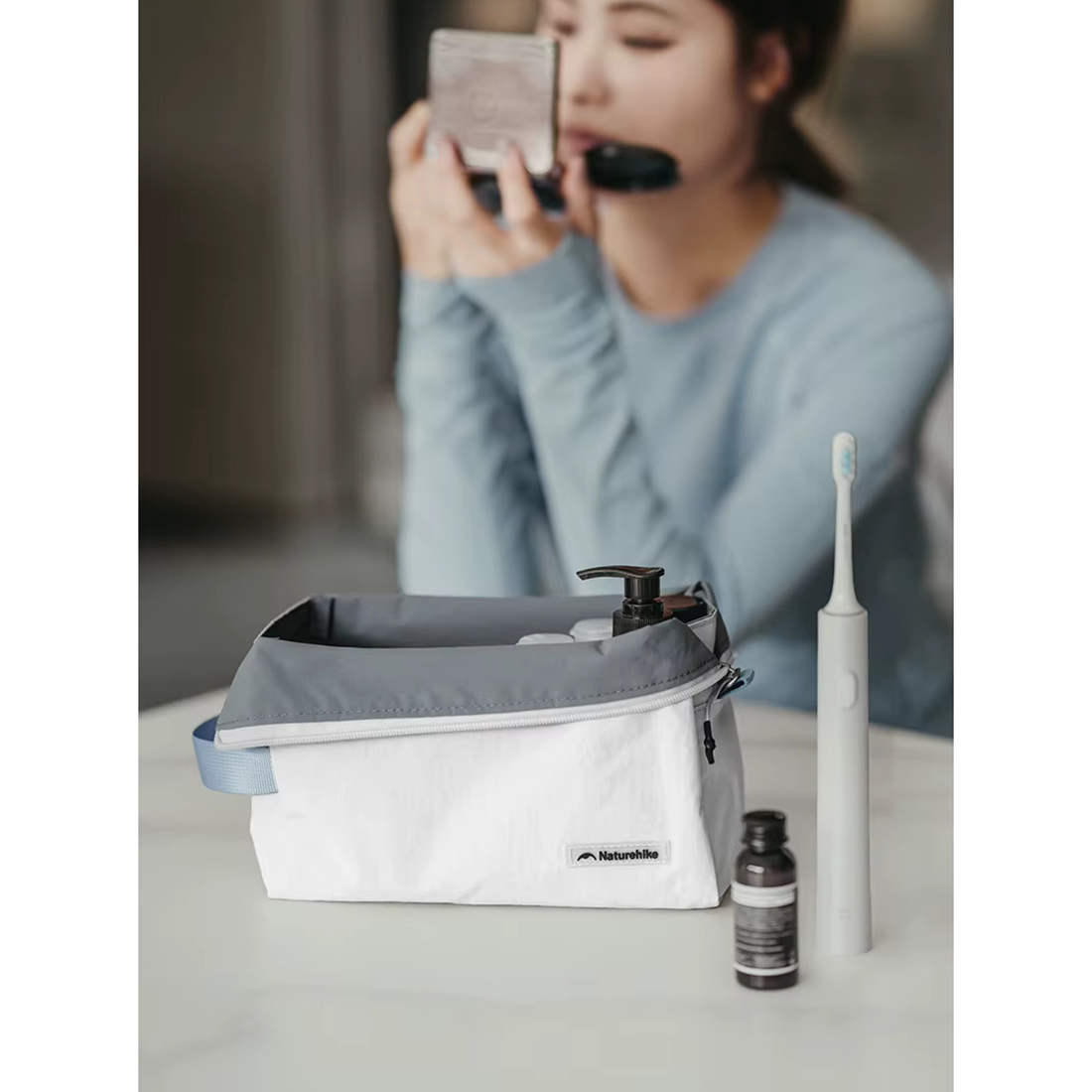 - Компактная, при этом достаточно функциональная. Вмещает флаконы, тюбики и другие предметы гигиены.