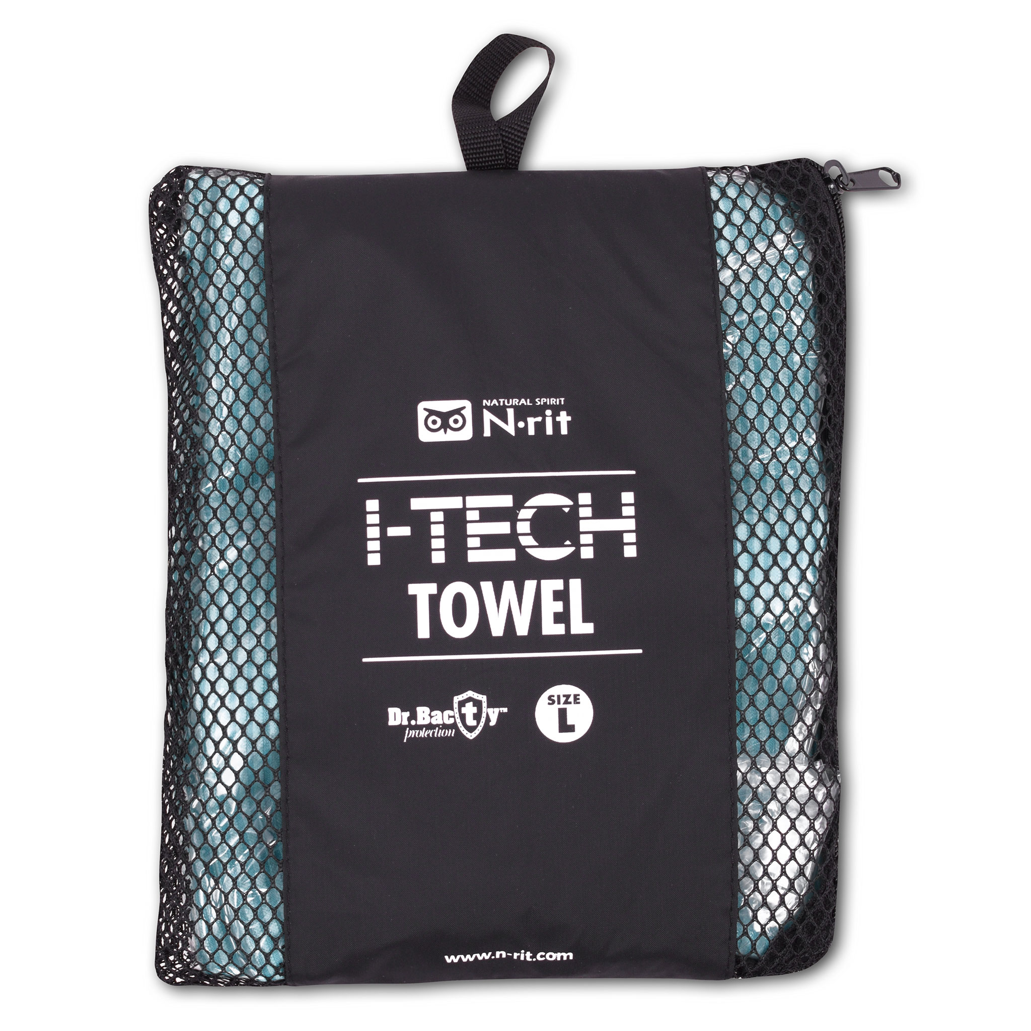Ультратонкий материал с анти-бактериальной обработкой, который сохраняет свежесть долгое время, препятствует размножению бактерий и неприятных запахов. На полотенце тиснение с логотипом бренда, сетчатый чехол на молнии в комплекте.