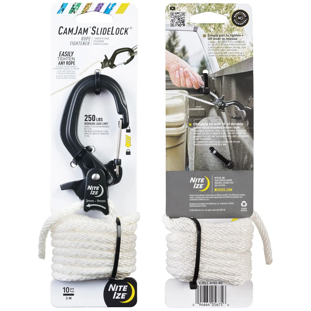Устройство с кулачковым механизмом, позволяющее быстро натянуть веревку или ослабить ее натяжение без использования узлов. Карабин надёжно крепится к D-образному кольцу, автомобильному багажнику и другим точкам крепления. В комплекте с устройством идёт прочный плетёный нейлоновый шнур толщиной 6 мм и длиной 3 метра.