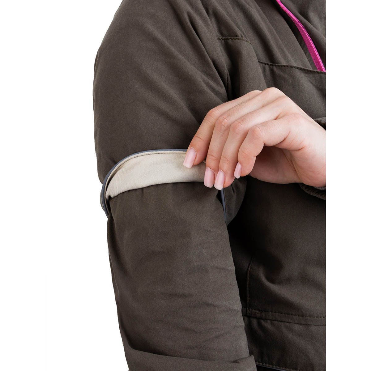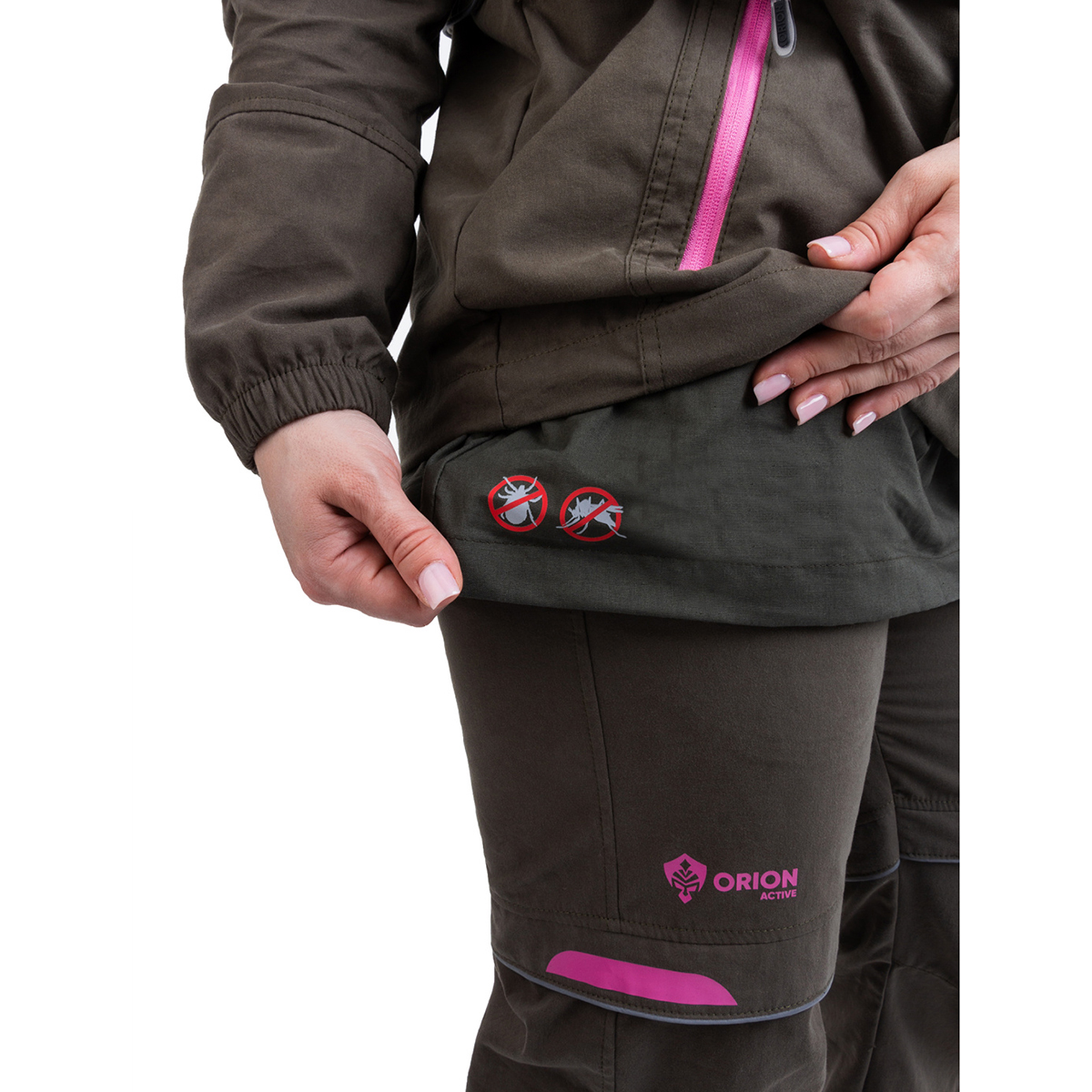 В арсенале костюма сохранились все механические средства защиты от насекомых: антиклещевые ловушки на брюках и куртке (включая ловушку под капюшоном), защитная юбка на куртке, двойные манжеты на рукавах и по низу брюк. Ткань не пропитана акарицидным составом, владелец данного костюма может применять любое привычное средство для обработки.