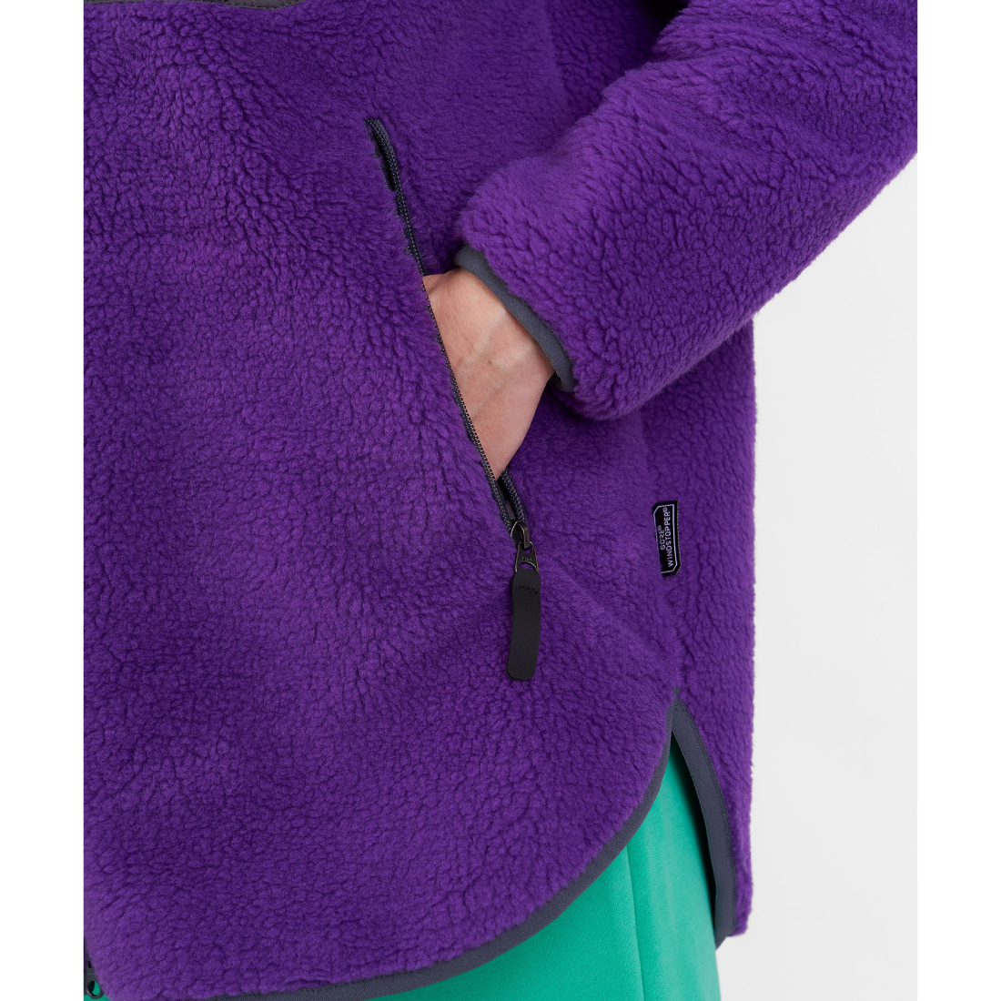 - Материал основы: GORE® WINDSTOPPER®, 100% Polyester, 3L Laminate Shearling fleece face /grid back
