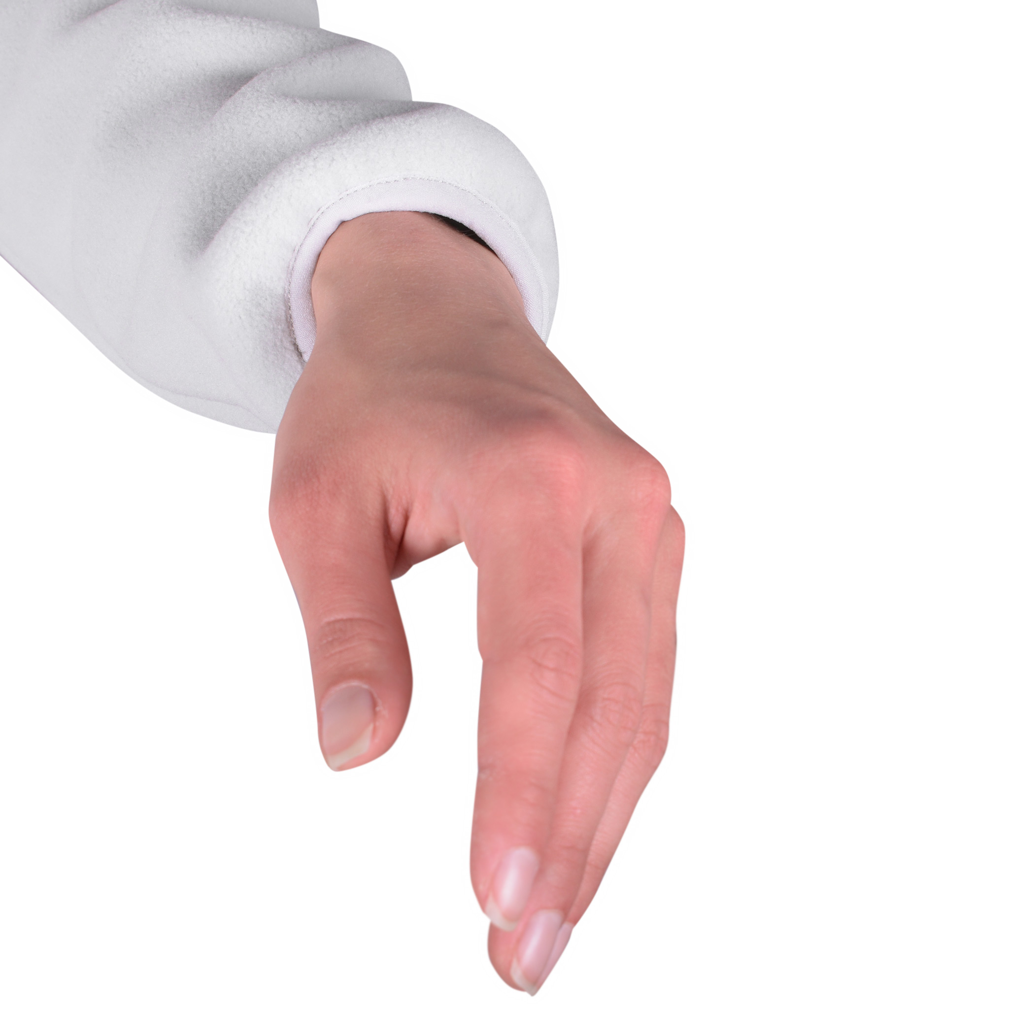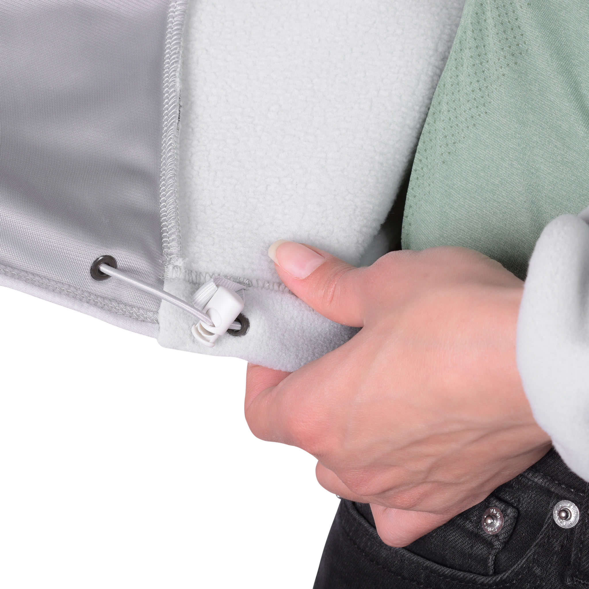 - низ рукавов и капюшон обработаны окантовочной резинкой, утягивающей свободный объем для сохранения тепла