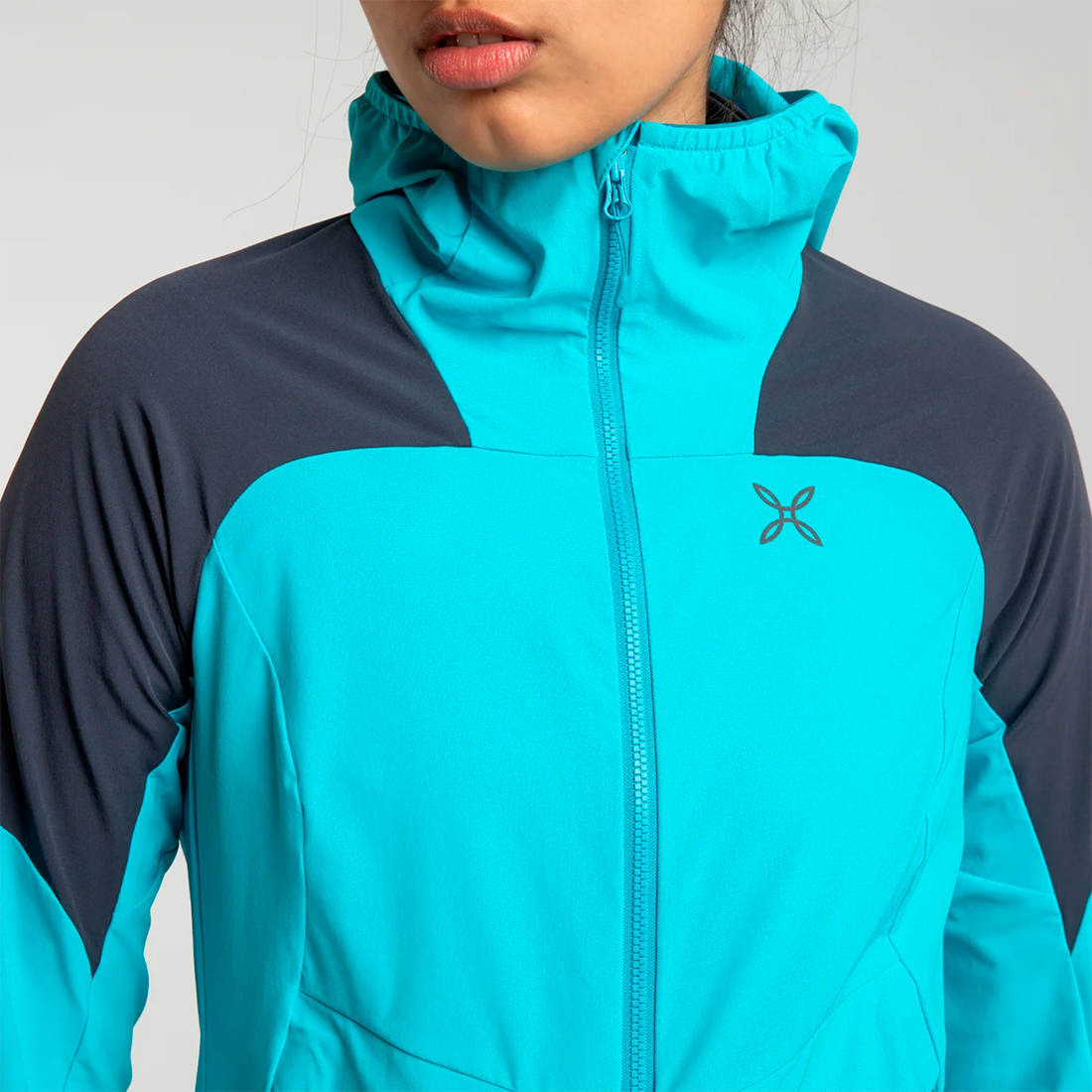 - Куртка изготовлена из эластичного нейлона, тянущегося в четырёх направлениях, что обеспечивает свободу движений.