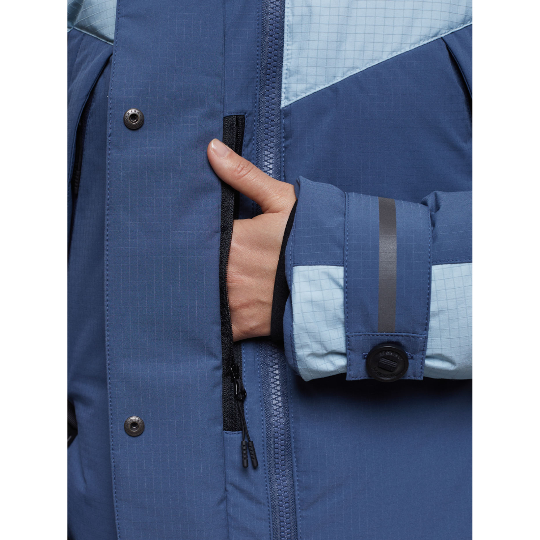 - световозвращающие элементы на манжетах, капюшоне и перекидной задней детали куртки